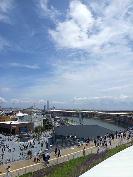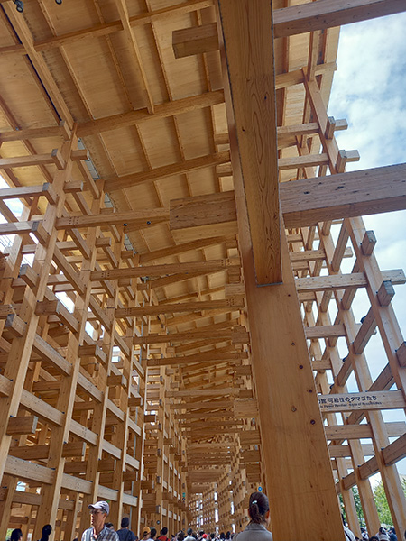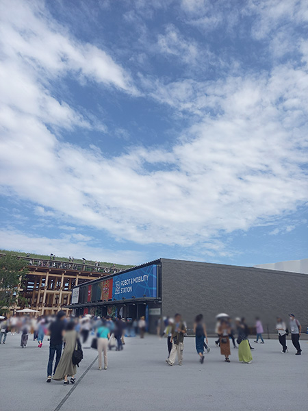 午後2時半頃、東ゲートより入ったが、暑くてゲート通過5分後には大屋根リングの下にいた。