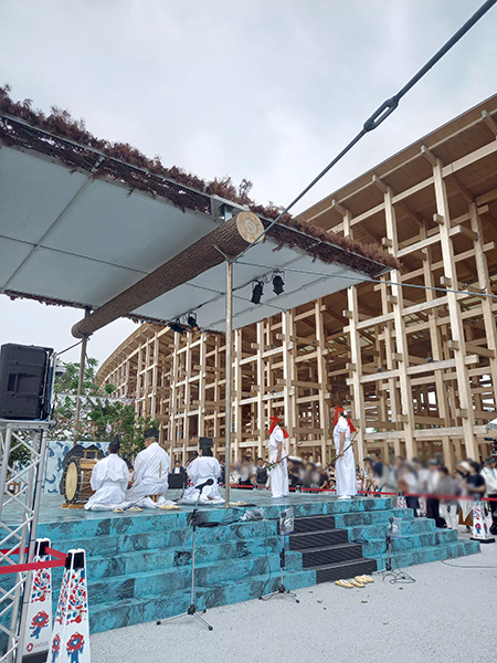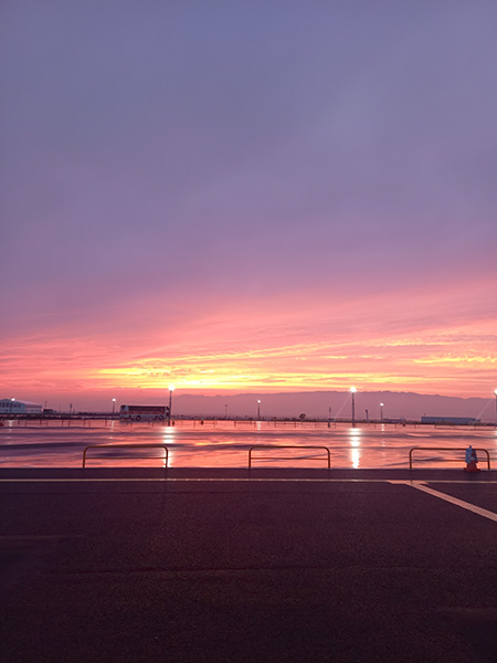 夕方からの仕事場は西ゲートから徒歩15分の場所。16時にゲートを出れば間に合うので、出口に向かう途中、待ち時間なしのインド館にも入った。が、人の流れに沿って歩いたら3分で観覧終了。まだ時間に余裕があったので西の屋外ステージで高千穂の夜神楽を10分ほど見てから会場を出た。日没前、職場となる駐車場から見た美しい夕日に本日一番の感動をする。自然はやはり偉大だ。