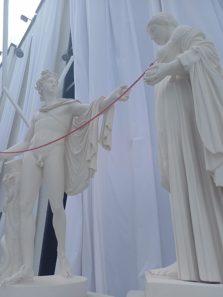 次いでモザンビーク館へ入り、撮るべき写真がなかったのでウロウロしていた時、フランス館の出口側に置いてあった像が目に入り、思わず写真を撮る。(フランス館は常に混雑しており中に入るには相当の時間と忍耐力が必要で、私には攻略できそうにないパビリオンなのだ。)時間になったので、会場を出て仕事場の第2交通ターミナルへ。今日も夕日がキレイに見えた。(写真はバス車内からの眺め。)