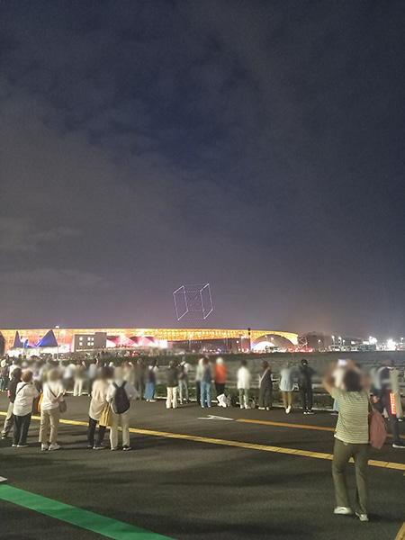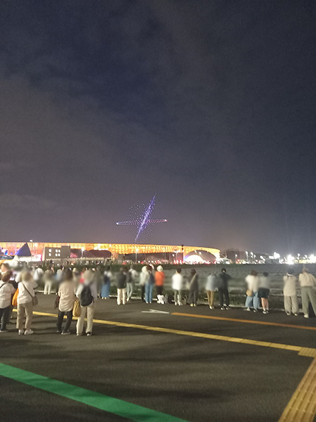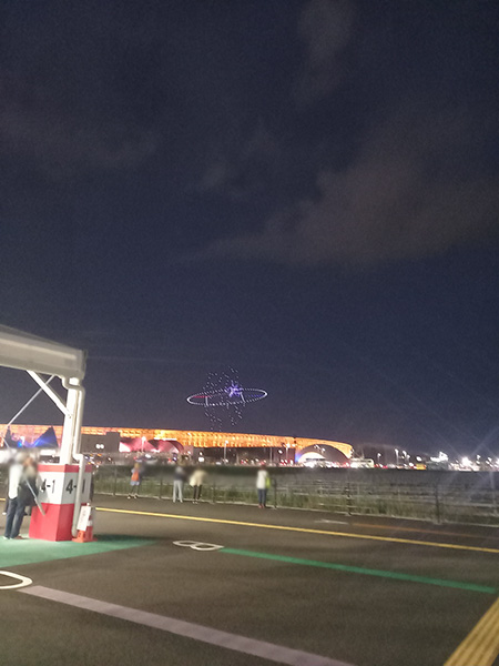 20時前、前日より開始時刻が繰り上がったドローンショーが見られた。ちょっとラッキー、と思った日。海風が吹いて快適な夢洲へ、果たしてあと何回行くのだろう?