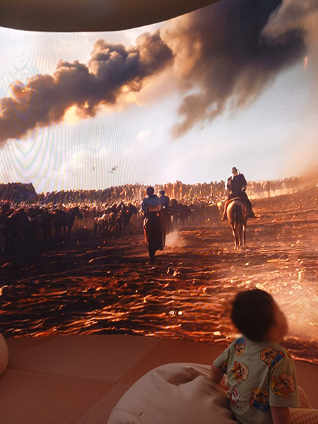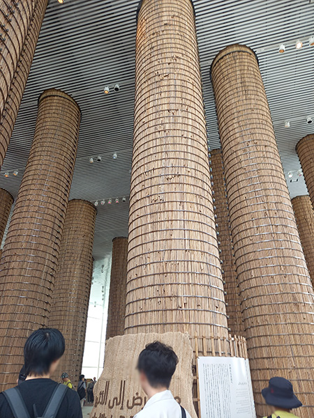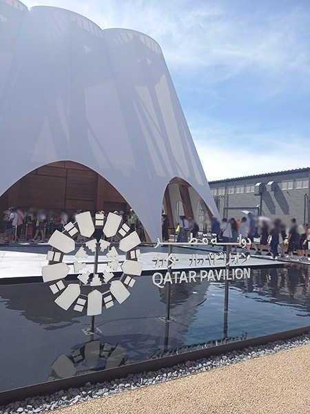 目を引く建物、待機時間も短そうだったので入ったカタール館。帰ってネットを見たら、日本の有名な建築家・隈研吾さんの設計事務所が手掛けたパビリオンとのこと。見ておいて良かった。