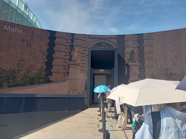 まだ時間的に余裕があったので、待機列が短めのパビリオン、マルタに並んで入った。滞在時間が長くなったのは、約10分間の映像鑑賞があったためなのだが、音楽のみで何の説明もない映像は不親切な気がした。せっかくの紹介ビデオなのだから、せめて国の基本情報を入れて欲しい。え、QRコードを読み取ればいいって? ならWi-Fi入れてくれよ(;_;)。