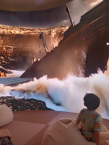 やっと当選した予約入場を果たす。15時40分からのブルーオーシャンドーム。7分間の映像を見た。私にはちょっとキモく感じた部分もあった。