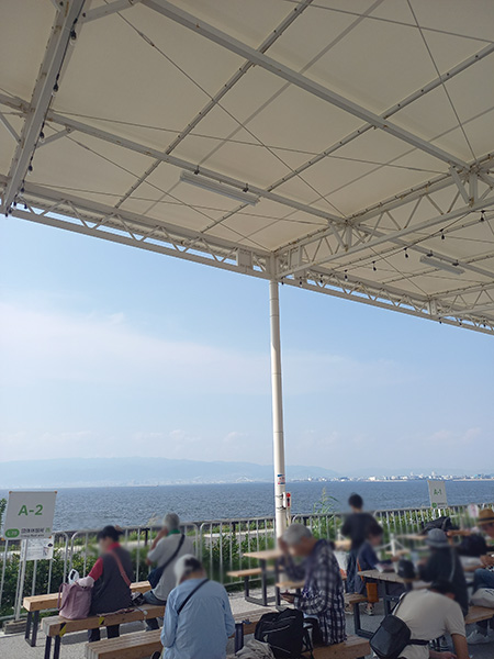 私は、つい団体休憩所(西)へ行ってしまう。比較的人口密度が低いと思う。(下の写真は22万人が入場した9月17日の団体休憩所(西)14時30分頃の様子)
