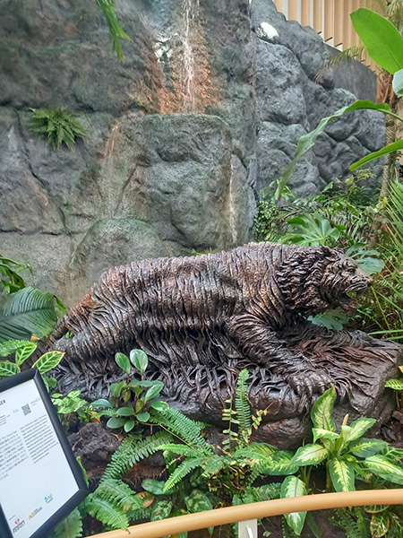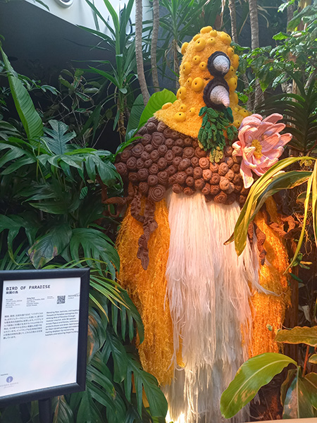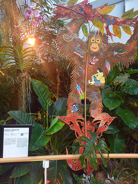 待つこと10分で入場。お面がディスプレイされたエントランスで簡単な説明を受けた後、扉が開いて涼しい屋内へ。1階はジャングルにアートを展示。