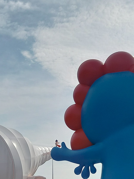 西ゲートへ向かう途中、チュニジアのパレードに出会う。写真だけ撮る。西ゲート近くのミャクミャクまで行った時、朝に観たテレビでやっていた「手乗りアトム」を思い出し、同じアングルで撮影する。(パソナのパビリオンのアトムとミャクミャクのコラボ。)
