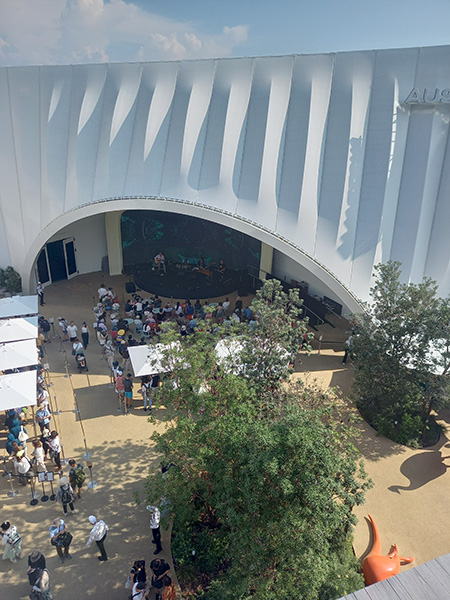 予約なしの日。自宅でイベント検索し、15時30分からのサウジアラビアのダンスだけ見ようと決めて会場へ。大屋根リングの下を歩いていたところエレベーターが空いていたので、乗った。リングの上は予想通り暑かったが、オーストラリアパビリオンの屋外ステージでのライブが見られて良かった。