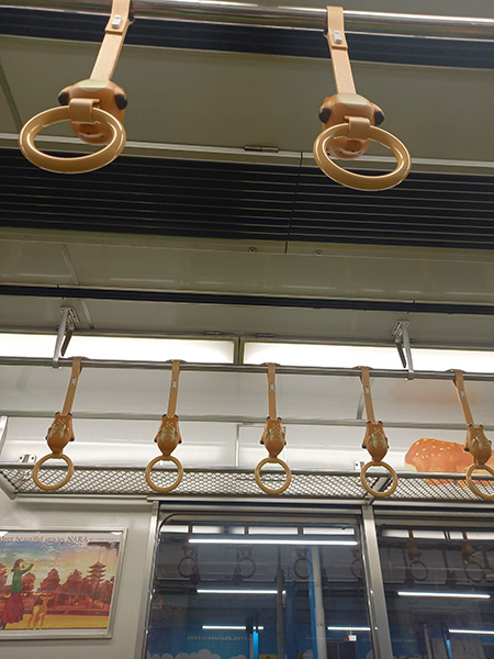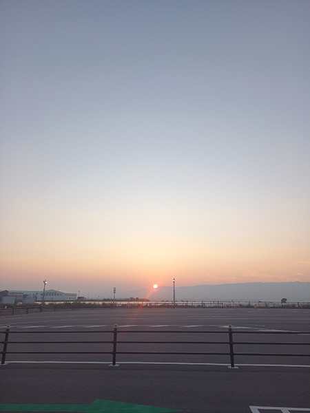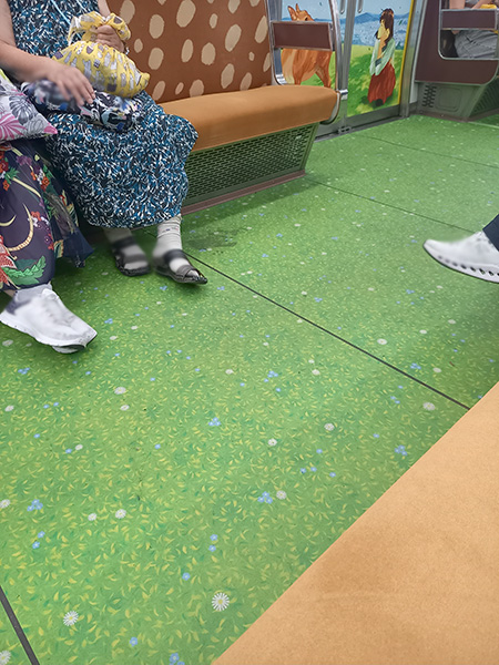 場内での写真が少ない日。駐車場から見た夕日と、帰宅時に乗った鹿列車(「ならしかトレイン」と言うらしい。奈良と大阪、神戸を結ぶ路線の電車。万博とは一切関係なし。すんません)を撮ったので、アップしておく。