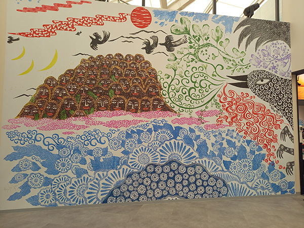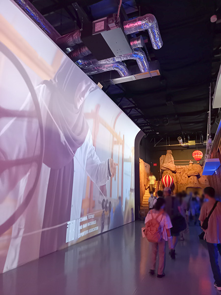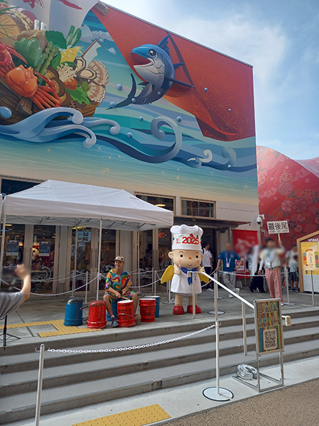 抽選が当たったパビリオンの予約まで時間があったので、『宴』の中に入った。売店だけかと思っていたが、2階には展示コーナー、体験コーナーなどがあり、ちゃんとしたパビリオンだった。この日の体験は、㈱グルメ杵屋。個人的には、香川の某うどん学校でヤングマンを歌いながらうどん踏みするのがオススメだけどな、と思いながらしばし見学。