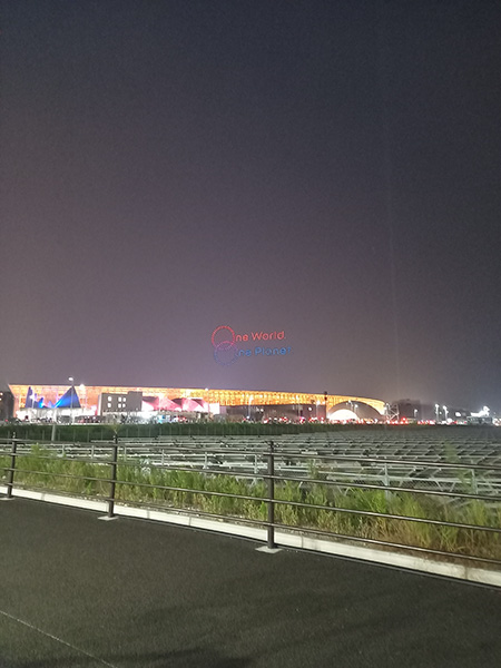 観覧後、西ゲートへ向かう途中、外食パビリオン『宴』の前でバケツドラマーがパフォーマンス。暑い中、熱い演奏をしていた。アーティストも大変だ。倒れないか心配した。ようやく涼しくなった20時前、ドローンショーが始まった。今夜は月とのコラボ。なかなか良かった。