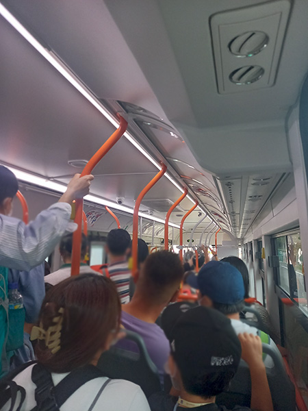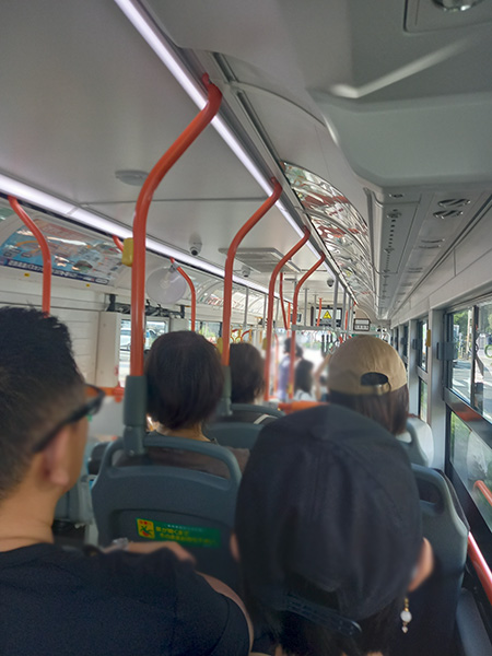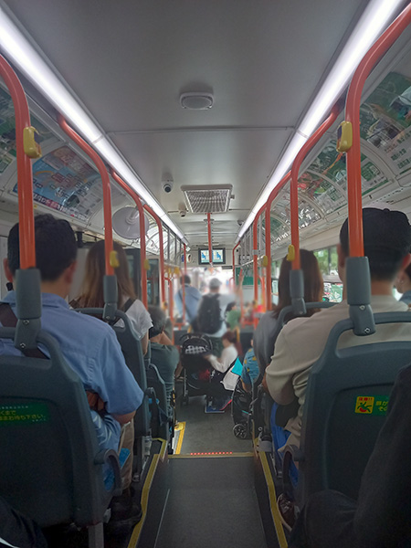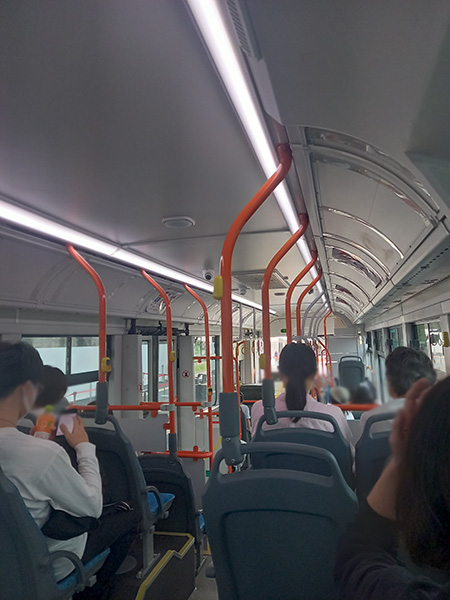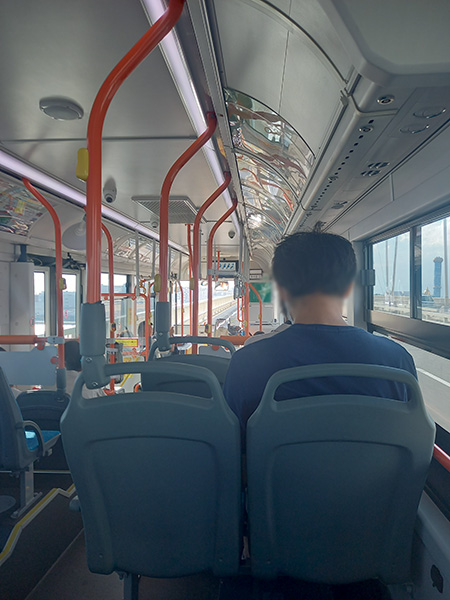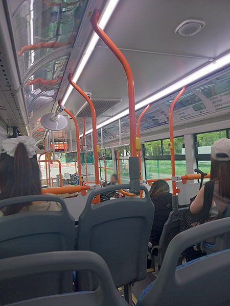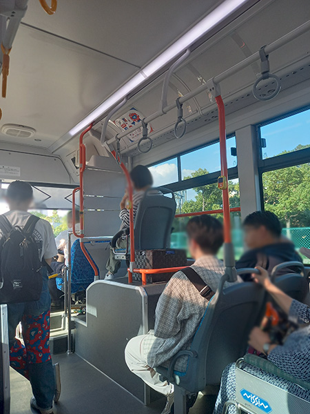 西九条駅15時4分のJRに乗ると、15時25分のシャトルバスに乗られる。だから、そのバスは混んでいる。だが、5分後のバスを待てば、空いている。JRが昼間は15分毎の運行だから、起こる現象だ。加えて、この便は座席数の多いバスである。だから、1本待てば確実に座れた。これは、その証明である。