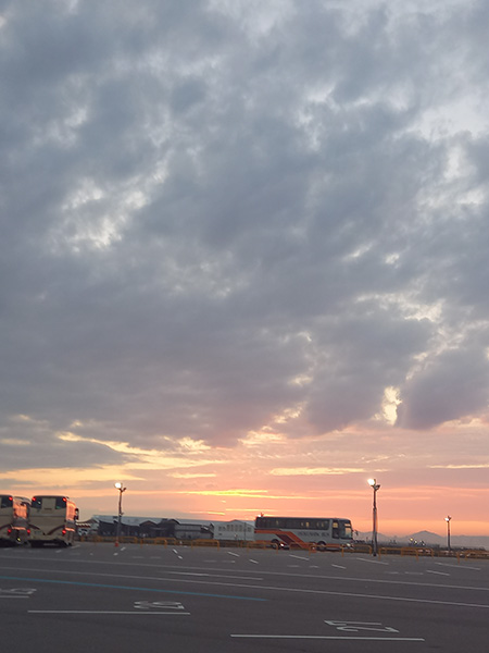 全て第2交通ターミナルでの撮影。日本の四季だけでなく、地球の自転、地軸の傾き、etc.を感じる瞬間。こうして並べてみると、「同じ日の入りでも空の色ってこんなに変わるんだ」と限りない自然に感激した。