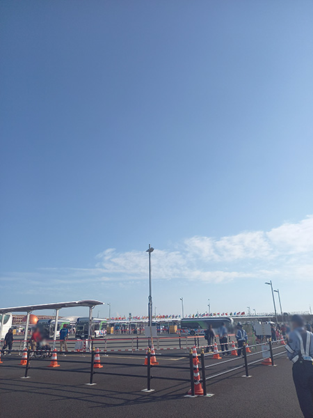 東ゲート入ったところの広場にあるミャクミャクの前は、9月に入ると「超・並ぶ万博」になった。