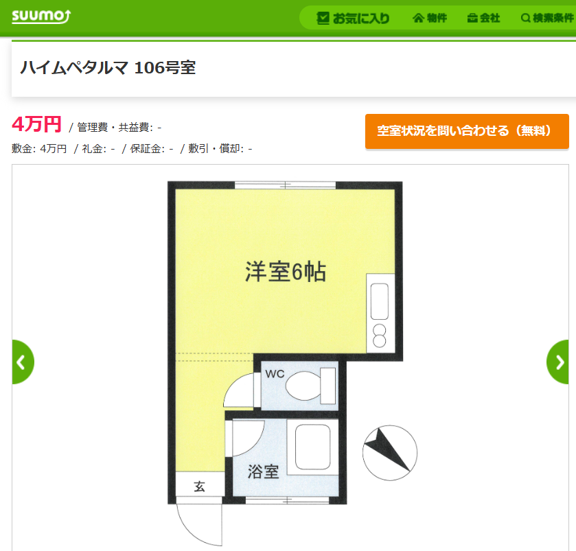 今回、東京で済んだあの江古田のアパートはどうなっているのかネット検索してみた。さすが令和だ、なんとアパートの情報は建物名「ハイムペタルマ」を入力しただけですぐに見つかった。しかも2026年1月27日段階で私が住んでいた部屋が入居者募集中! それが下のスクショした画像だ。家賃は経年のせいだろう値下がりしていた。しかし疑問がひとつ。この広告によると1988年築となっているが、私が借りていたのは1986年4月~1987年12月だ。どういうこと? 外観写真は全く一緒なんだけどなぁ。築年の入力ミス? 確かめてみてSUUMOさん!