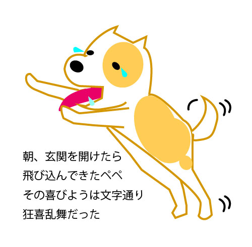 ペペは家に来た翌年に初潮を迎えた。犬小屋の前に赤いものが点々と落ちている光景は、小学生の私にはちょっとショッキングだったが、動物にもフツーに生理があることを知った。安産祈願に戌の日の理由もペペで納得した。門の下の隙間から入り込んできたオス犬に襲われたペペは、すぐに妊娠し、気が付くと出産していた。ただ、初産は1匹だったので、なんとなくそのまま親子で飼っていた。子供の名前は「くぅ」。姉が付けた。国語の教科書に載っていた名前だと翌年、同じ教科書を使った私は知った。夜間など塀の外を歩く酔っ払いを特に恐れて親子でワンワンキャンキャンうるさくてさすがにご近所迷惑だということで、父の取引先である倉庫の番犬に二匹ともあげることにしたのだった。犬3 帰ってきたペペ
